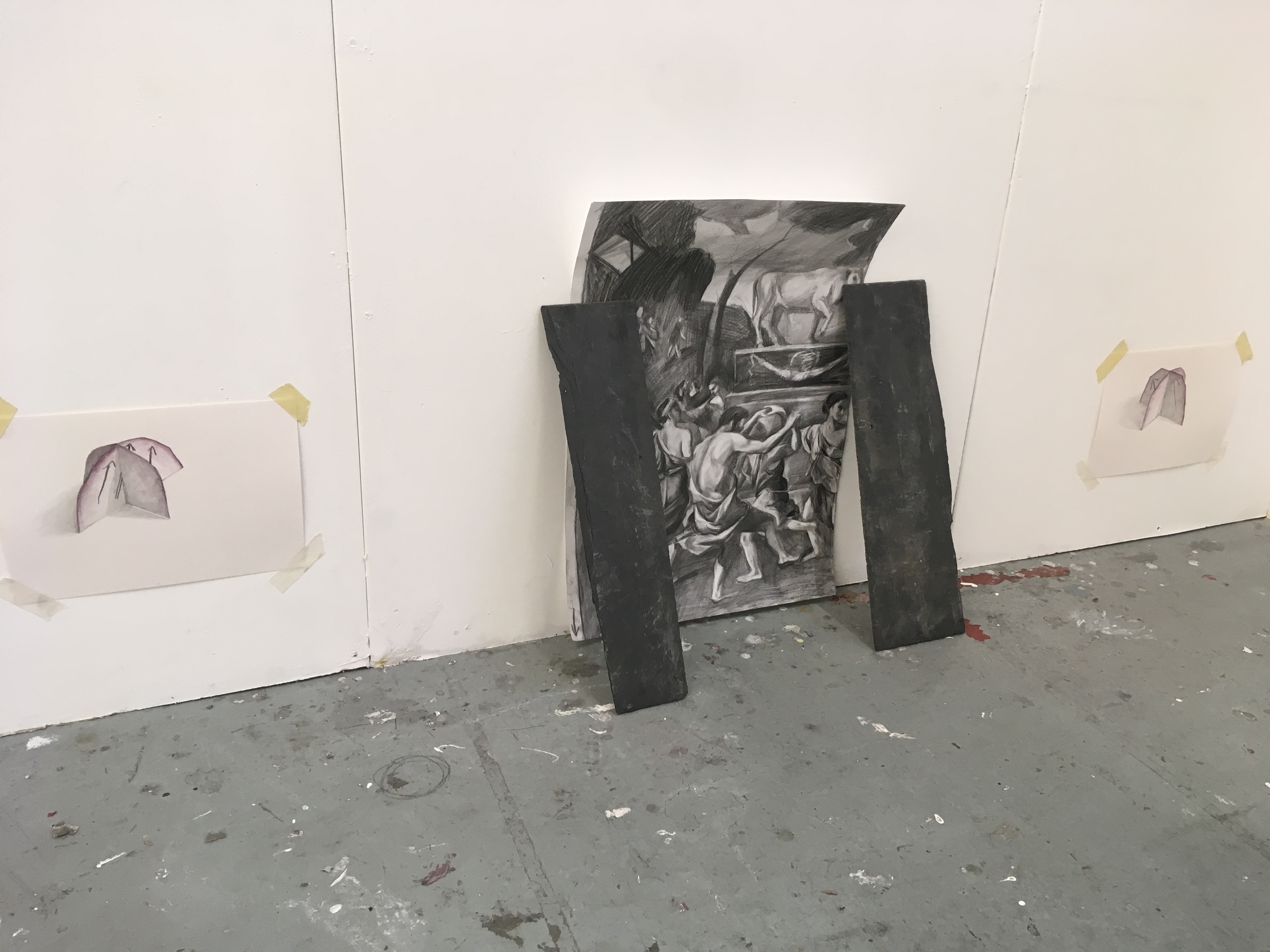 Installatio shot alongside Kate Bright’s painting at Greenfield Projectspace exhibition Adjacents